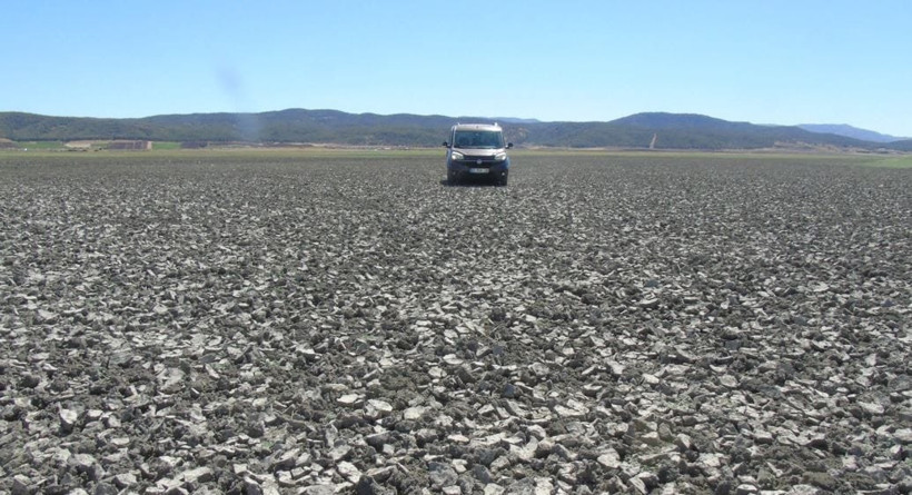 Kuraklığın etkisinin açıkça görüldüğü barajda ölen balıklar ve midyeler, kuruyan toprakların üzerinde göze çarpıyor.